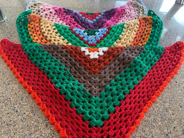 A BIG Thank-You to our dedicated volunteer crocheter, Carol Famighette, who donated all these beautiful handmade shawls!